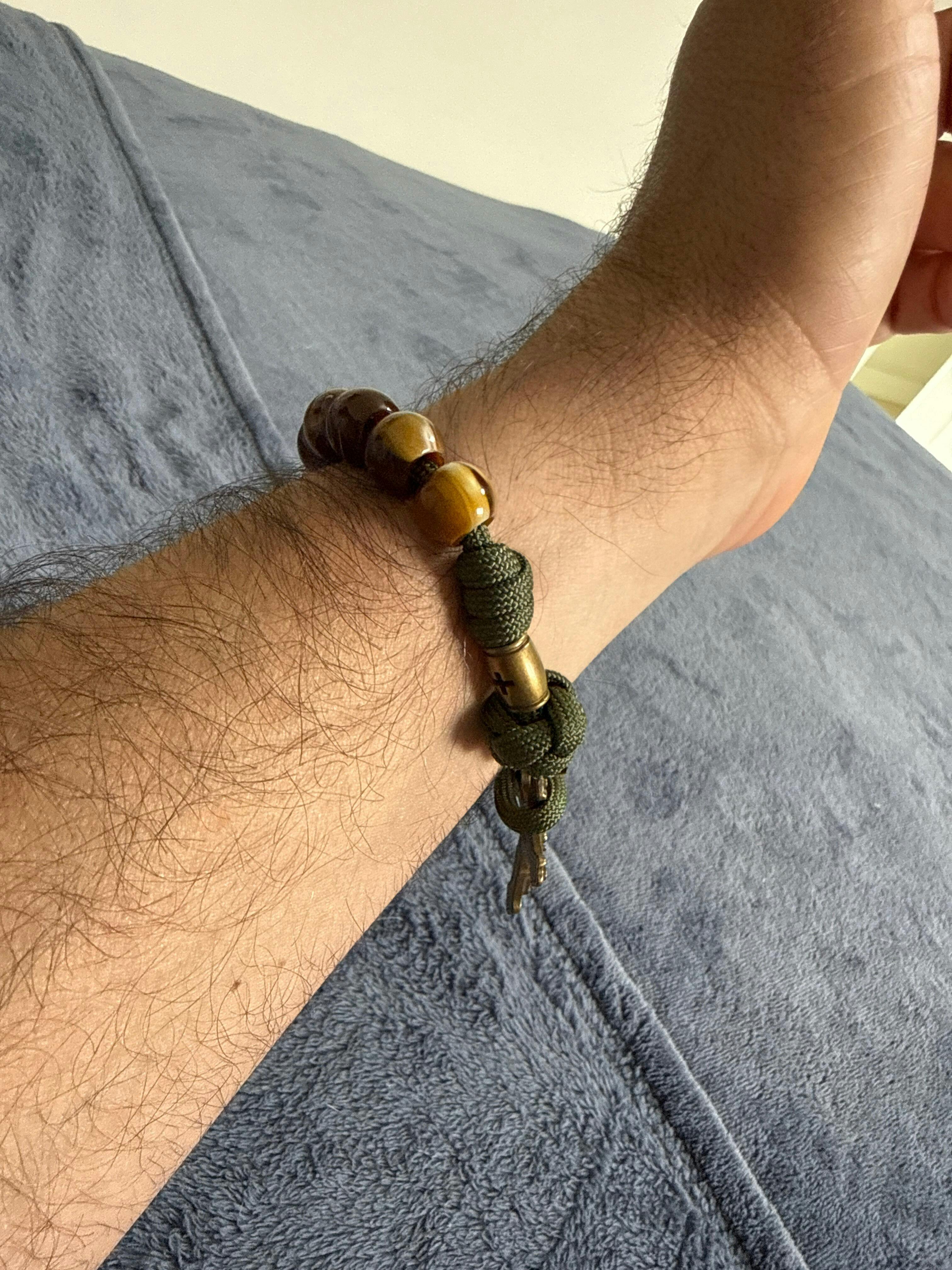 É confeccionado utilizando Paracord 550, um tipo de corda especial de alta resistência, com capa e núcleo de 7 filamentos. Já foi utilizado pelo exército na construção de paraquedas, e já foi utilizado até em missões espaciais. Ele é leve e muito durável.