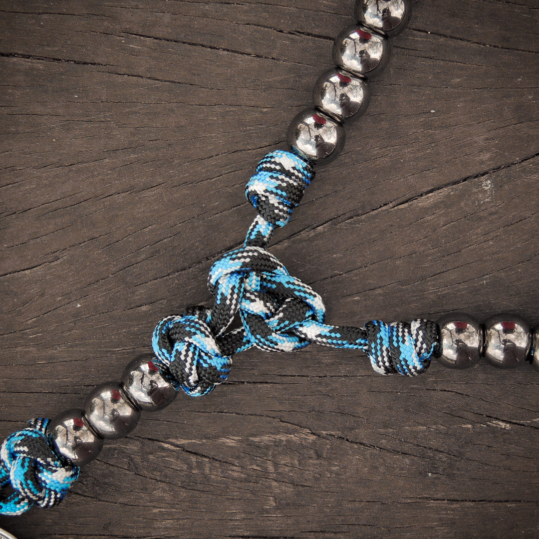 A oração do terço é, para muitos, um momento diário de encontro com Deus e meditação nos mistérios da redenção. Esse momento, além de ser espiritual, é também sensorial, e o instrumento que utilizamos para realizar a oração do terço pode então ter um papel importante. A beleza, a fortaleza, a atenção aos detalhes... tudo isso nos remete a Deus. O Terço Cordolário de 5 mistérios é a nossa proposta para melhor atender a este momento. É uma forma digna e honrosa de dar testemunho de sua fé.