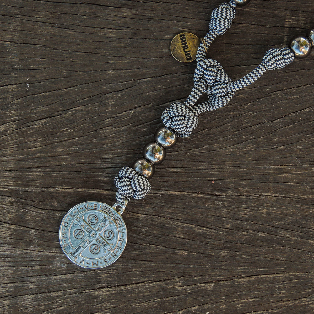 Terço Medalha de São Bento Virtus - Preto e Branco